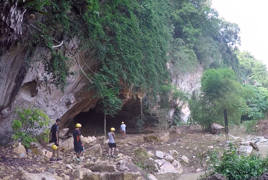 After waterfall abseiling, we went caving at Gua Kandu. Gua Kandu is a limestone cave. It used to be the hideout place for the communist back in the days. Some part of it was very dusty. It was pitch black inside. We each had a torch light/headlight to help us move in the dark. Most parts were dry. Helmet is a must as we have to crawl/squat at certain area and I bumped my head multiple times.